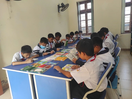 Học sinh đọc sách tại thư viện trường